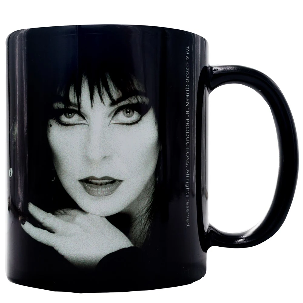 Exclusive Elvira Black Cat Mug. 11 oz. ceramic black mug with Elvira Black Cat print. Hand wash recommended. Printed in the USA.