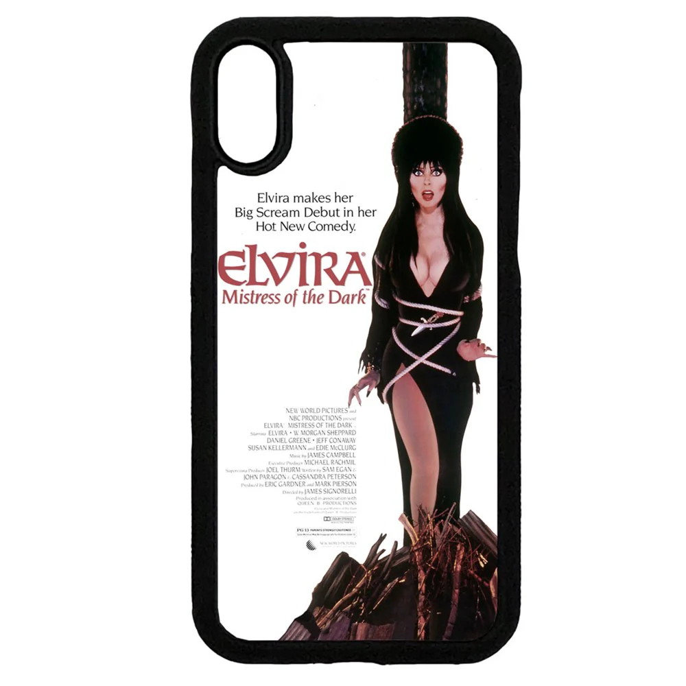 Elvira MOTD Movie Iphone Black Rubber Case that adds a touch of spooky charm to your phone! Featuring glossy plastic protection and a soft rubber surround that guards against bumps and drops, this unique phone case is perfect for any fan of Elvira Mistress of the Dark . Each product is printed and assembled in the USA as a official Elvira's Bootique exclusive. Image layout may vary slightly from photo due to different phone sizing.